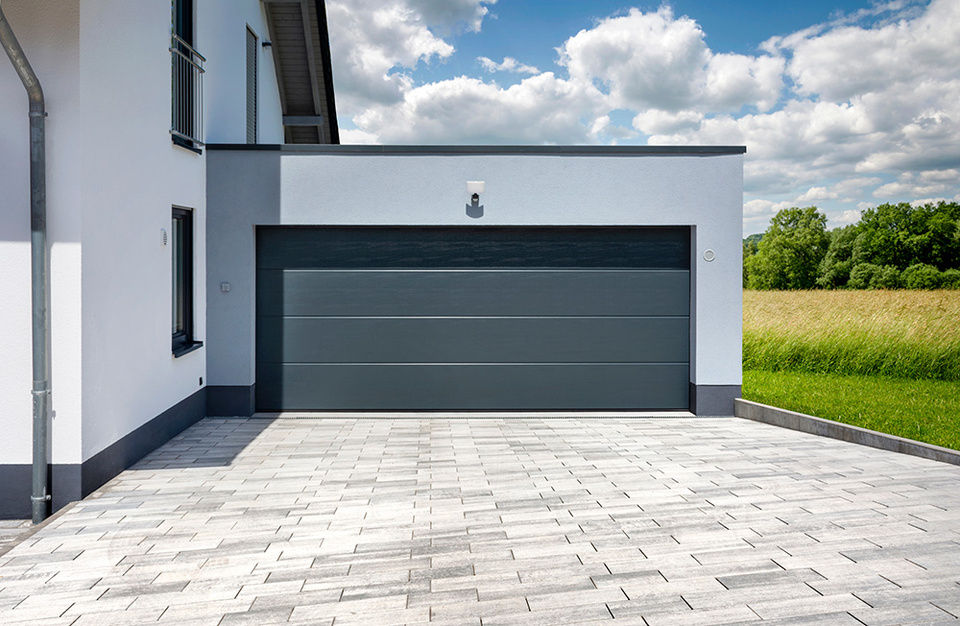Sektionaltore ziehen Sie ebenfalls nach oben auf. Diese bestehen jedoch aus mehreren einzelnen Bereichen, die jeweils über Scharniere verbunden sind. Daher lassen sie sich abwinkeln. Sektionaltore schwenken nicht aus. Sie können sie senkrecht nach oben hin öffnen.