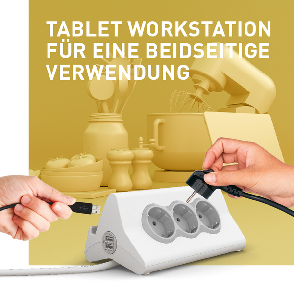 • Tablet Workstation mit USB und Steckdosen